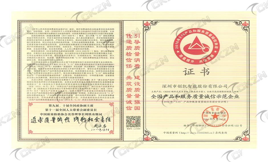 全國產品和服務質量誠信示范企業